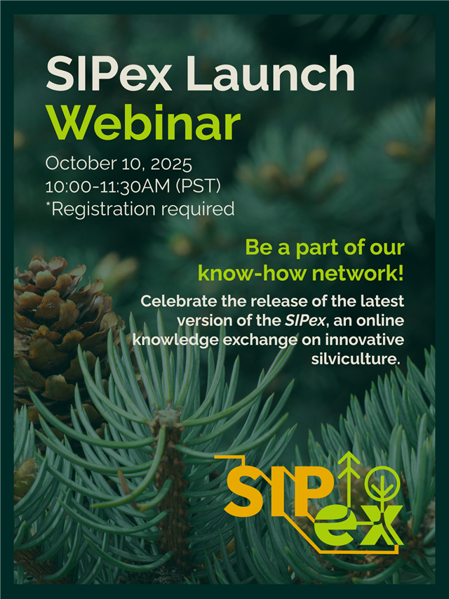 The SIPex is an online knowledge exchange tool to support innovative silviculture. The goal of the SIPex is to inform forest management decisions by providing access to knowledge and knowledge holders to innovate the ways in which values are managed, practices are implemented, and approaches are created.